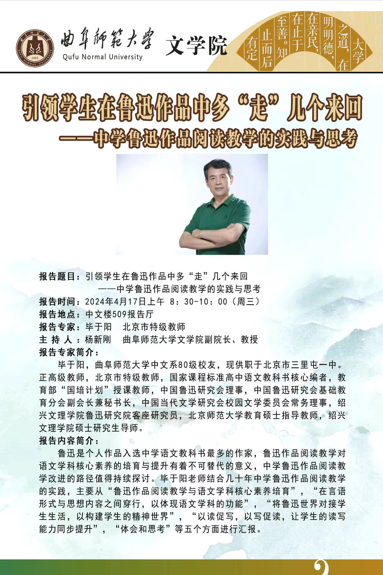 学术报告预告|引领学生在鲁迅作品中多“走”几个来回——中学鲁迅作品阅读教学的实践与思考