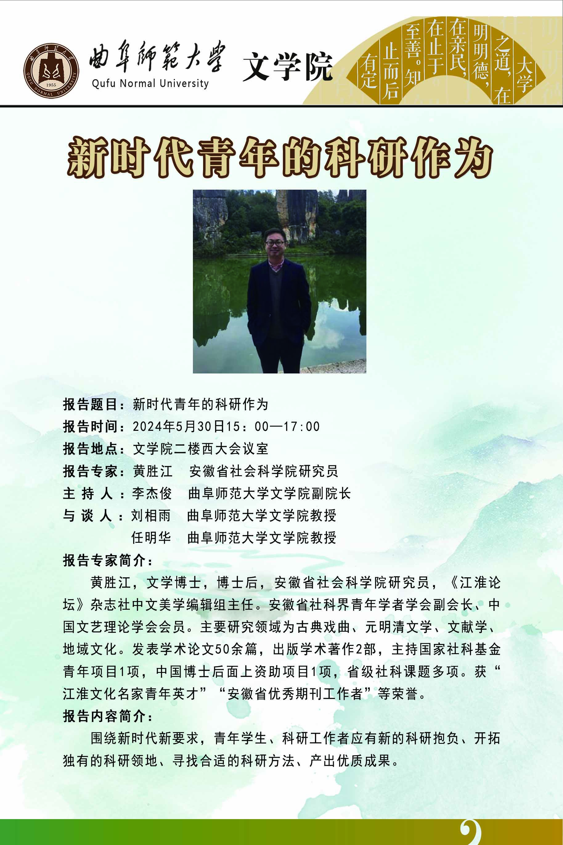 学术报告预告|新时代青年的科研作为