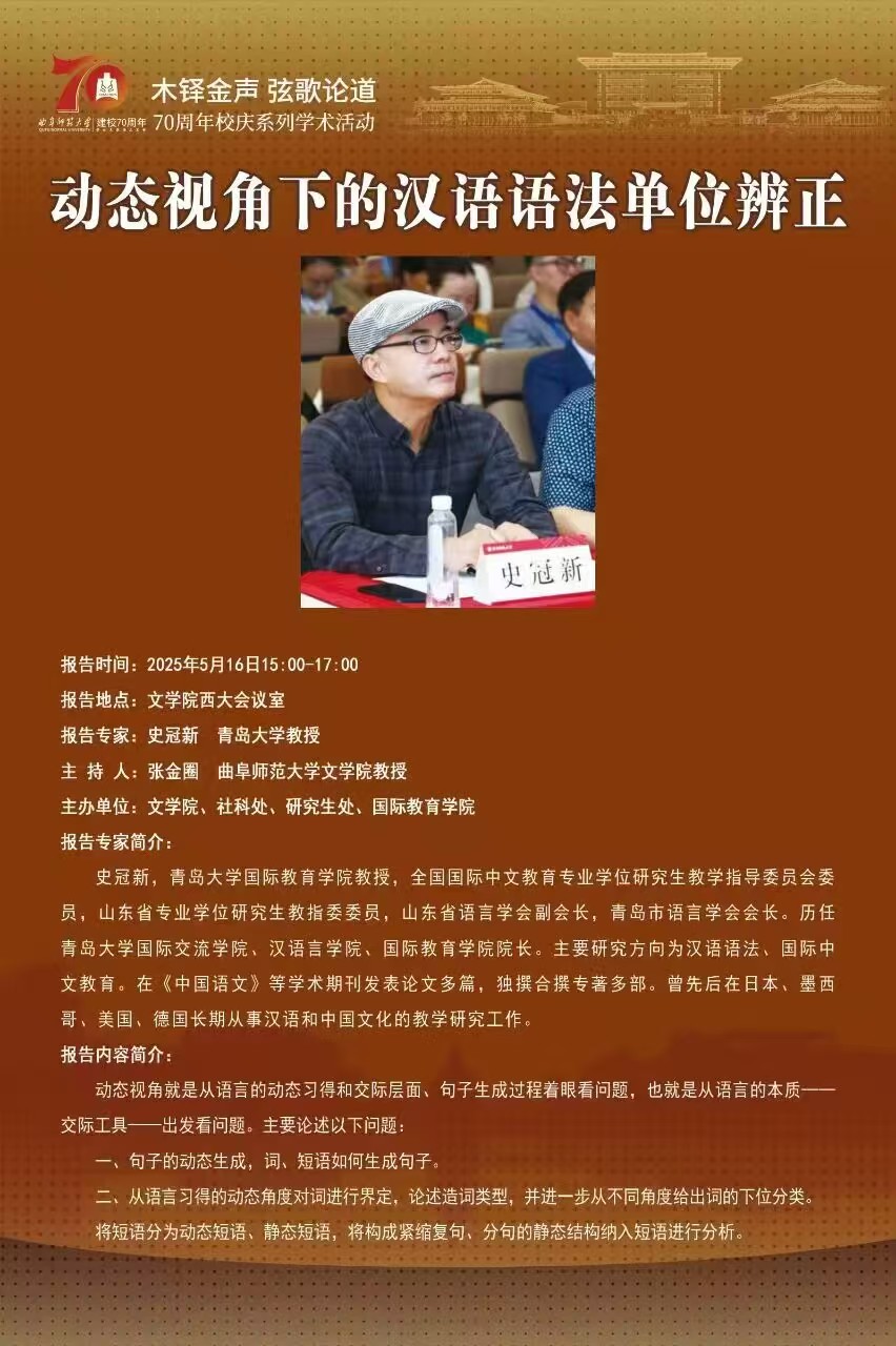70周年校庆系列学术报告|动态视角下的汉语语法单位辨正