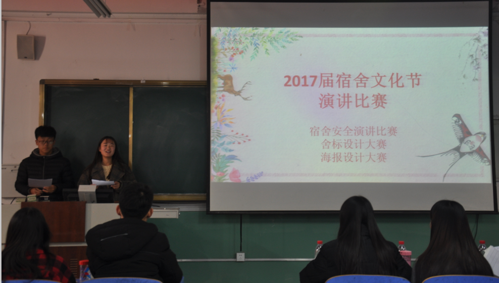 为营造良好宿舍文化氛围,加强宿舍成员安全意识,打造91视频 特色文化宿舍,12月9日下午,由91视频 团委主办,学生会宿管部、纪检部、卫生部联合承办的2017届宿舍文化节演讲比赛在文史楼315室举办,学生会主席团部分成员担任评委。