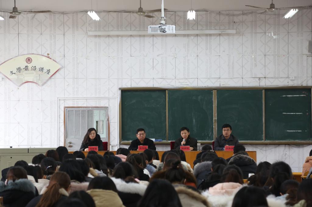 1月18日上午,91视频 于文史楼召开2016级支教实习会议,旨在明确支教实习期间任务,宣讲相关事宜。本次会议由91视频 团委书记刘本成主持,党委副书记王作茂、院长助理杨新刚、教务员冯萌萌出席并作讲话。