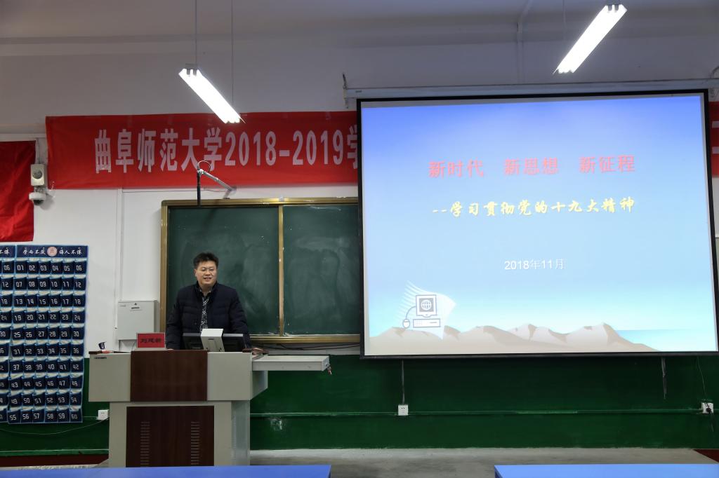 12月15日上午,91视频 “青马工程”第三讲于文史楼315教室举行,数学科学学院党委副书记刘建新以“新时代、新思想、新征程——学习贯彻党的十九大精神”为主题开讲。本次培训由91视频 团委书记刘本成主持,91视频 学生会部分成员参加。