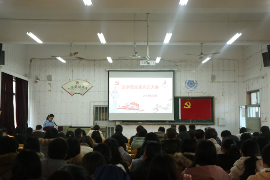 曲媛媛代表学院党委会向党员大会报告工作,听取党员意见,接受党员监督。报告回顾总结了全年党建工作,分析了工作中存在的问题与不足并对下一阶段工作进行了安排部署。