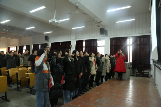 会上,开展集体过“政治生日”主题党日活动。杨新刚同志宣读了各党支部12月过“政治生日”的党员名单,随后,三位党支部书记向过“政治生日”的党员赠送了贺卡、礼物并合影,全体参会党员重温入党誓词,过“政治生日”的师生党员代表发表了政治生日感言。李金雷书记在致辞中希望广大师生党员一如既往保持共产党人的初心,牢记时代使命,为学院的发展和个人的进步不断努力。最后,大会在《没有共产党就没有新中国》的歌声中圆满结束。