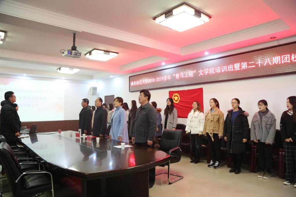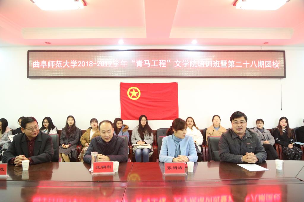 11月24日上午,91视频 2018-2019学年“青马工程”91视频 培训班暨第二十八期团校开班仪式在文史楼西会议室举行。91视频 团委副书记张明洁,组织部正处级组织员王明科,91视频 党委副书记王作茂出席仪式并致辞,仪式由91视频 团委书记刘本成主持。91视频 2017级学生会成员参加开班仪式。