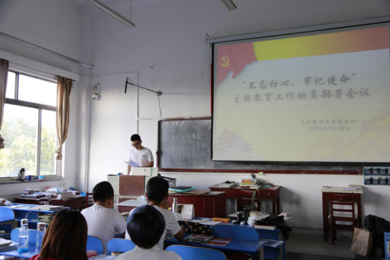 根据学院“不忘初心、牢记使命”主题教育工作的统一部署,我院研究生党支部于9月18日下午召开“不忘初心、牢记使命”主题教育动员部署会议。会议由王晓晖主持,研究生党支部全体成员参加了此次会议。