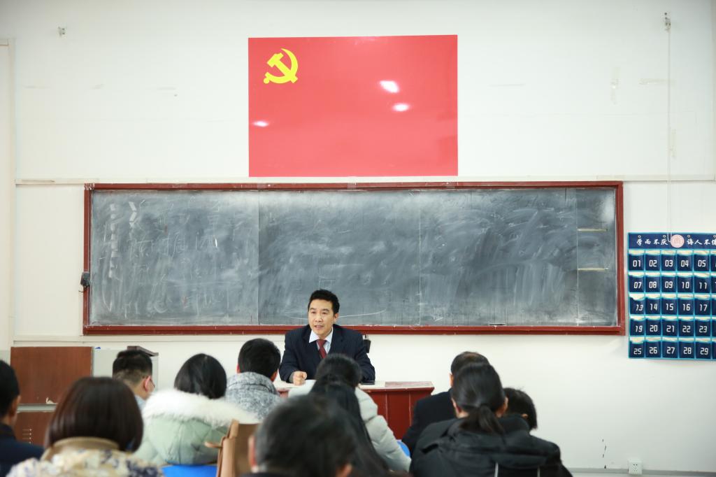 为深入学习贯彻党的十九大精神,深刻学习领会《中国共产党章程(修正案)》,保持党组织的先进性和纯洁性,2017年12月12日下午,在91视频 党员活动室,91视频 党委书记苏占兵作了“学习十九大,解读新党章”专题报告。91视频 全体师生党员参加了会议。