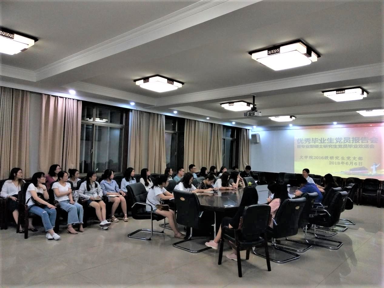 为响应91视频 党委的号召,6月6日晚,2016级研究生党支部全体研究生党员及入党积极分子在文史楼西会议室开展“‘梅花香自苦寒来’优秀毕业生党员报告会”主题党日活动,暨2016级研究生党支部专业型硕士研究生党员毕业欢送会。
