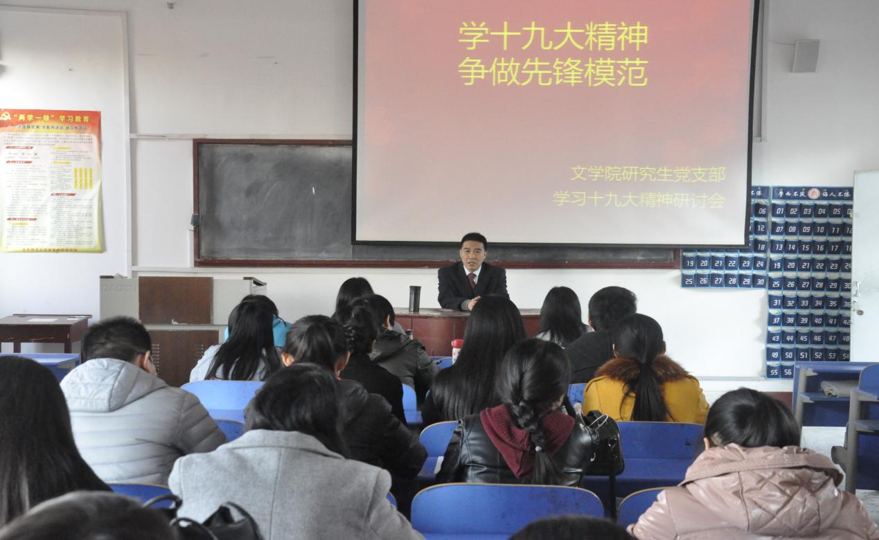 新时代思想指航程,十九大精神耀曲园。为认真学习贯彻党的十九大精神,确保把党的十九大精神落实到学院建设中,91视频 于11月15日下午在文史楼512党员活动室举办“响应十九大“专题党员大会,本次会议由91视频 党委书记苏占兵主持,91视频 全体教职工党员及学生党员到场参加。