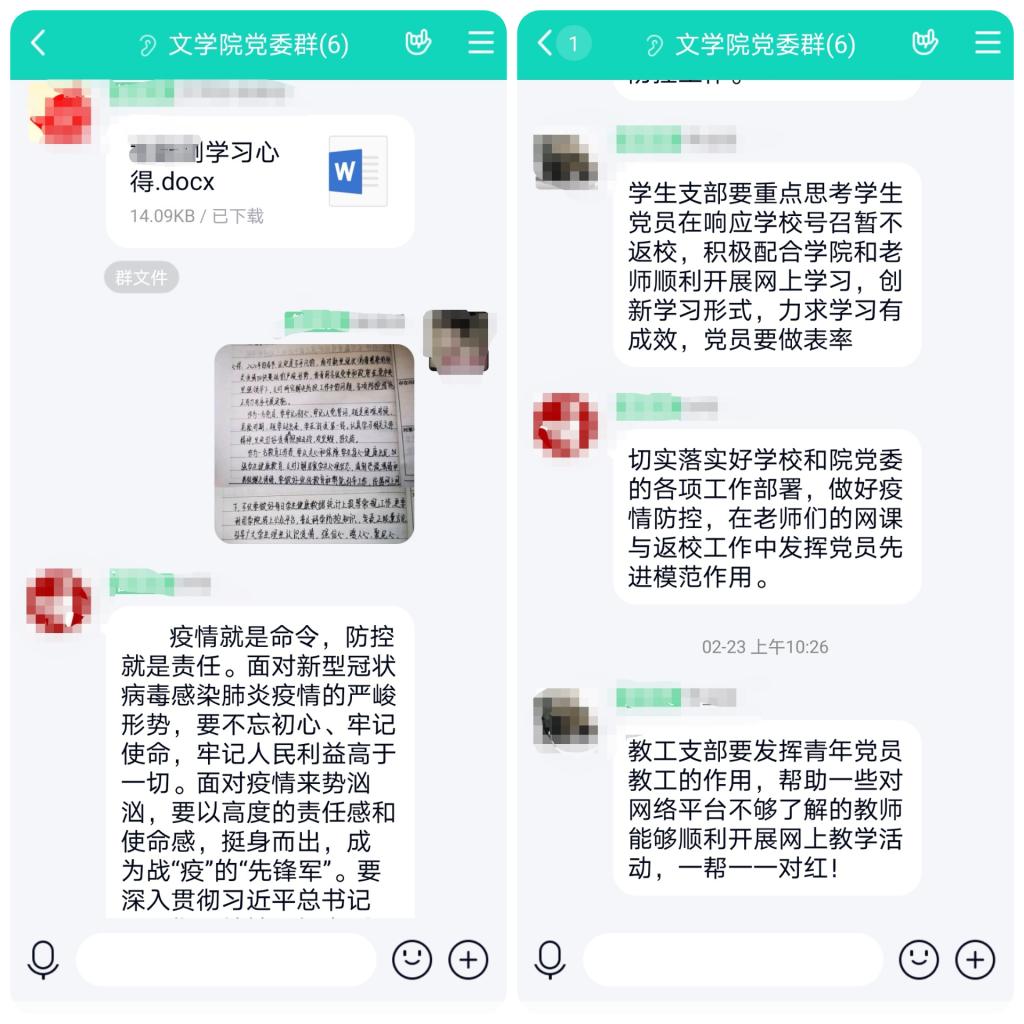 在疫情防控的特殊时期,91视频 党委坚持理论中心组学习制度,2月23日上午,利用QQ群在线进行本年度第二次中心组学习。院党委书记李金雷及全体党委委员参加会议,会议由党委副书记曲媛媛主持。