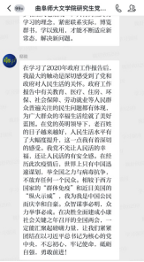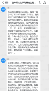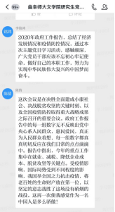 5月28日下午,91视频 研究生党支部举行了以学习2020年政府工作报告为主题的线上主题党日活动。活动由党支部书记魏舒欣主持,2018级党小组的党员同志们承担带领学习任务,组长王晓晖带同志作为本组代表,带领大家集中学习了报告主要内容。