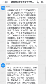 5月22日上午9时,第十三届全国人民代表大会第三次会议在人民大会堂开幕。李克强总理作政府工作报告,总结回顾了去年和今年以来的工作,指明了城镇就业、农村脱贫等方面的重要工作目标,规划了在抗疫、财政、减税降费、就业、创新、消费、投资、金融脱贫攻坚、农业、教育、社保、开放、港澳台等方面的工作内容。91视频 研究生党支部在此次主题党日活动中,在王晓晖同志的主导下,党支部结合当前社会热点对政府工作报告的内容进行了详细的学习,在学习中感受到了国家对百姓生活的关怀和帮助,为自己是一名中国人而感到自豪。在魏舒欣同志的带领下,支部内党员相互分享了学习心得,并依托“学习强国”平台进一步讨论交流。