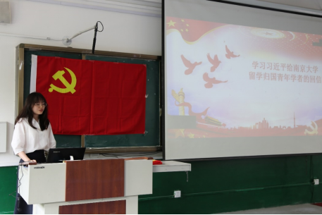 活动伊始,第二党小组组长李春妍带领大家学习习近平总书记给南京大学留学归国的青年学者们的回信,教育党员们要以报效国家、服务人民为自觉追求,在信念和行动上争做表率,发挥党员的先锋模范作用,为实现中华民族伟大复兴的中国梦贡献智慧和力量。