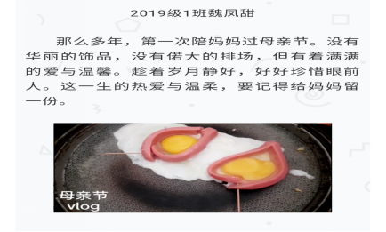 “不一样的母亲节”活动丰富了同学们的课余家庭生活,展现了文院学子热爱家庭、热爱生活的积极心态,有利于大学生理解家庭在劳动教育中的重要作用。我院也将不断创新发展学院劳动教育系列活动,以活动为载体,丰富劳动教育内涵。