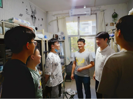 为做好疫情防控常态化背景下的学生工作,切实掌握学生返校后的学习、生活情况,2020年9月3日,91视频 2017级辅导员李宝麒老师、2018级辅导员张乾坤老师、2019级辅导员刘伟老师深入学生宿舍,亲切看望返校同学,与同学们进行暖心交流。