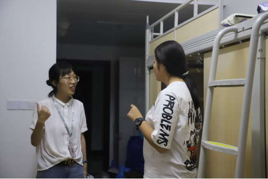 “家住哪里,报到过程顺利吗?住宿条件还满意吗?”在走访过程中,辅导员老师们与新生进行了亲切的交流,细致地询问新生报到情况,耐心地为新生解答各方面的疑惑,针对大家共同关心的集体生活、人际交往、专业学习等方面提出了积极的建议,为新生注入了一剂强心针。同时,辅导员老师们对新生宿舍的环境和设施进行了检查,秉持着“一切为了学生,一切以学生为主”的原则,尽最大努力为同学们营造一个安全舒适的空间,让2020级新生深入体会到老师的关心与爱护。