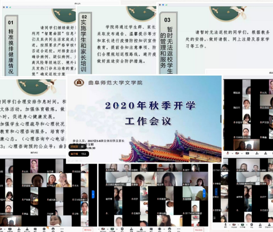 为做好2020年秋季学期学生返校和疫情防护工作,保证新学期各项工作的有序展开,8月30日,91视频 通过线上腾讯会议以及QQ群课堂的形式召开2020年秋季开学工作会议。会议分别由2017级辅导员李宝麒老师、2018级辅导员张乾坤老师、2019级辅导员刘伟老师主持,我院全体学生及部分学生家长参加了此次会议。
