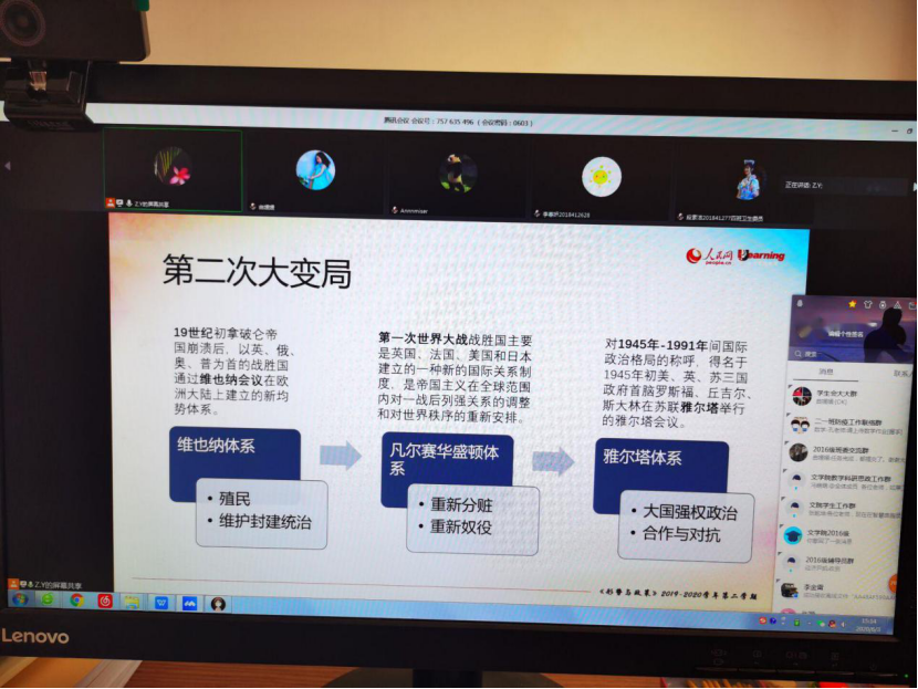 6月3日下午,91视频 党委常委、宣传部部长张隆海同志以《准确把握“百年未有之大变局”的深刻内涵》为题,为91视频 学生讲授思政课。课程通过腾讯会议系统,向学院300余名学生进行了实时直播。