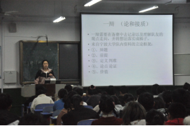 接下来,19级优秀辩手雷路阳也向同学们介绍了一辩的主要职责,特别提醒同学们要善于利用图书馆等平台寻找资源。19级优秀辩手宋倩为同学们送上了自己在辩论赛中总结的干货,着重地向同学们介绍了二辩与三辩的职责与技巧,还提醒同学们要注意拓开思路,精确数据。最后,19级优秀辩手乔峰用生动形象的例子为大家阐述了四辩的职责,为同学们辨清了封闭式与开放式问题,还为同学们阐释了一些辩论的专有名词,如质询,达成共识等,让同学们对辩论赛有了进一步的了解。