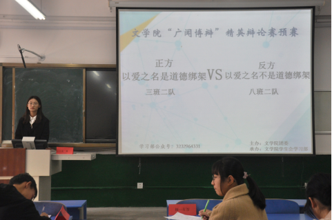 11月8日上午8点,由91视频 团委主办、91视频 学生会学习部承办的“广闻博辩”精英辩论赛预赛在文史楼315、320、324、414教室成功举办。本次辩论赛预赛邀请到了18、19级优秀辩手和20级各班负责人代表担任评委,他们本着公平、公正的原则对选手们的表现进行评判。同时场内观众热情似火,给予选手莫大的支持。