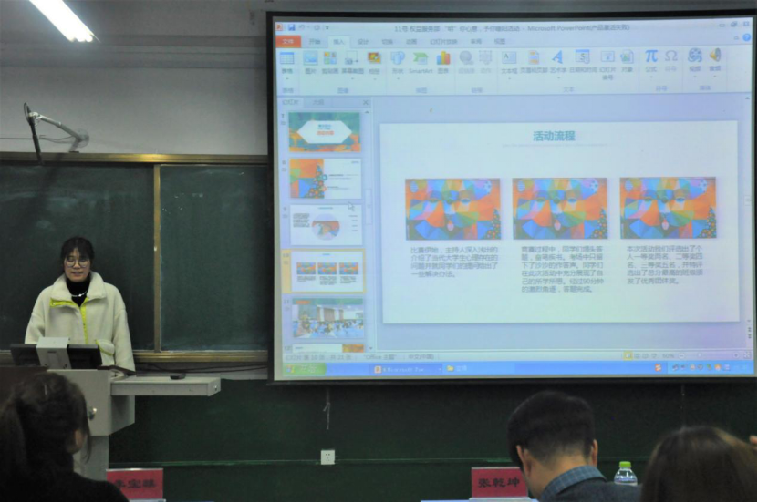 各部门介绍结束后,评委老师与学生代表依据评分细则进行打分,并评选优秀活动,树立活动典范,每年延续举办。