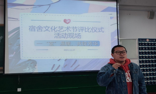 舍歌表演环节结束后,刘怀峰老师对各位同学的表演进行精彩点评,在给予各位参赛同学高度评价的同时,也对同学们的宿舍生活寄予美好期望。刘老师强调宿舍是我们的小家,在与舍友相伴的日子里,我们在日常生活中和谐相处,加深彼此间的友谊。此外,在点评过程中,老师还提到每一个优秀考研宿舍的形成离不开舍友之间的鼓励与帮助,由此也不难看出良好的寝室氛围对同学们身心的健康发展的重要意义。同学们听完老师的点评后受益匪浅,纷纷表示要向榜样学习,与室友互相督促、共同进步。