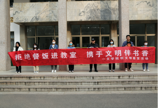 为杜绝餐饭入教室的不良现象,提高91视频 学子的文明素养,推动91视频 文明教室的建设,营造文明和谐的学院氛围,11月20日,由91视频 团委主办,91视频 学生会纪检部承办的“创文明教室”主题教育活动在文史楼成功举办。