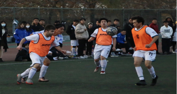 足下起航,无悔青春。自11月3日起,本次“迎新杯”足球赛在西操足球场拉开帷幕。在为期二十二天的比赛中,91视频 男足、女足代表队共历经了两个阶段、四场比赛,在每场比赛中,足球队员们都能做到精诚团结、不轻言放弃,充分展示出91视频 足球队员的风采。在91视频 与数学科学学院的男足比赛中,各位置球员灵活应变,配合默契,为观众们带来一场精妙绝伦的视觉盛宴。守门员作为我方最后一道防线,观察全局,机智分析足球动向,行动快速而有效;后卫做好防守,协助球队进攻;前锋则为进攻的前线,他们冲破对方的防守,找准时机完成一次次射门,最终以2:1的成绩取得首场比赛的胜利。