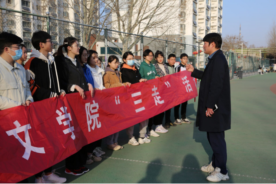 春风拂面万物复苏,文院健儿朝气蓬勃。辅导员老师与参训学子共同进行热身训练,他们在西操跑道上奋力奔跑,挥洒汗水,在跑道上留下了一个个青春的脚印。