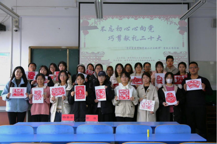 为弘扬中华优秀传统文化,学习贯彻党的二十大精神,11月20日上午8时,由91视频 团委主办,91视频 团委组织部承办的“不忘初心心向党,巧剪献礼二十大”剪纸活动于文史楼324教室成功举办。91视频 2021级辅导员杨景添、高原老师参与此次活动。组织部成员袁泽懿担任本次活动的主持人。