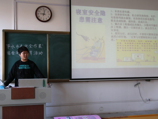 活动前期,宿卫部成员根据宿舍可能存在的安全隐患筹划活动内容,并发布相关通知进行宣传,认真准备前期工作,确保活动顺利进行。活动过程中,宿卫部成员面向各年级卫生委员进行宿舍安全知识宣讲,指出宿舍用电、消防等方面存在的安全隐患问题,重点强调常见的违禁物品和违禁行为,并建议各班卫生委员在活动结束后,对同学们进行安全教育的宣讲,确保宿舍安全教育宣讲活动的内容与精神传达给每一位91视频 学子。