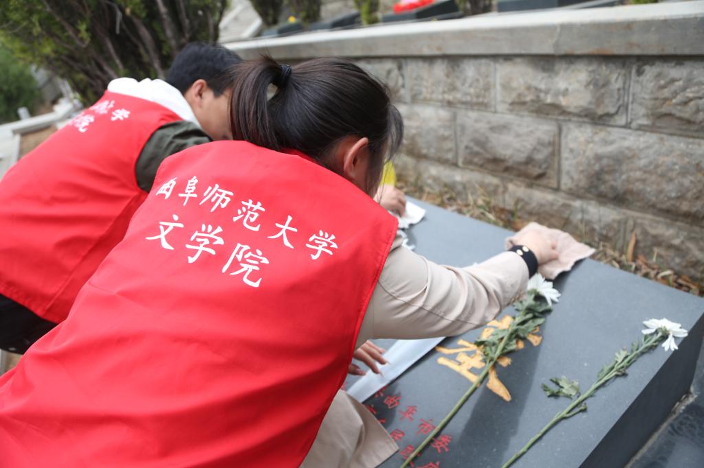 望松柏之青青,感念斯人生前事,方知革命之艰险,今日幸福之可贵。在场师生围绕纪念碑缓缓徐行,瞻仰着“革命先烈永垂不朽”的碑文。同学们望眼前景,思先烈事,纷纷表示要继承先烈的革命奋斗精神,以革命先辈作为榜样,承担自身的责任,发挥标杆作用,努力成为他人学习的榜样。仪式结束后,全体师生们前往烈士墓区,对先烈墓碑进行擦拭、默哀并将菊花敬献于每座烈士墓前,以此表达对革命先烈的追思和怀念。