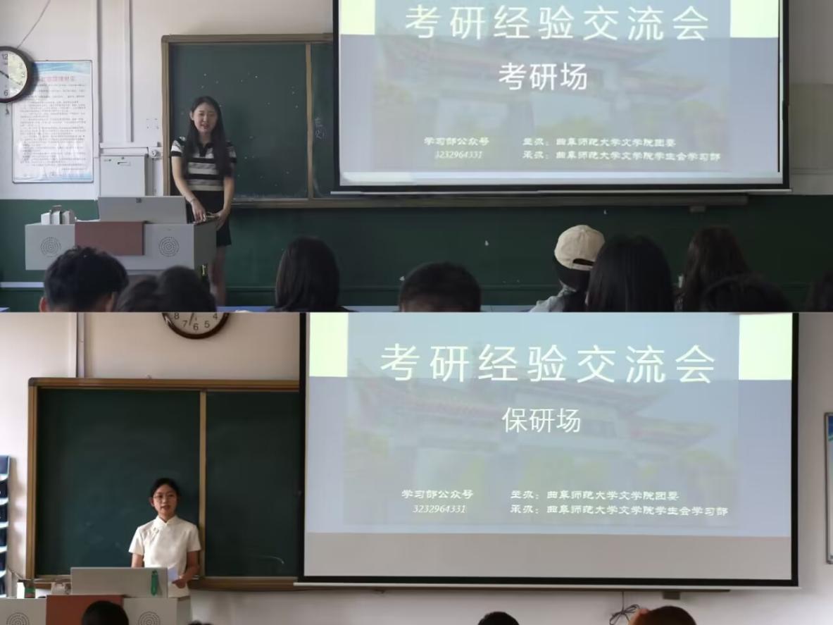 本次考研交流会邀请了2021级优秀毕业生分享经验,分别设置考研、保研两个专场。为了满足更多同学的学习需求,本次考研经验交流会采用线上线下相结合的模式。考虑到2022级师范专业学生因教育实习安排无法到现场参加,学习部安排专门人员在交流会现场进行全程录制,捕捉分享嘉宾们的精彩瞬间,清晰呈现他们展示的复习资料、数据图表等内容。录制结束后,将这些视频发布在活动群中,方便同学们随时随地学习考研保研经验,确保有意向的同学都能从这场交流会中汲取知识和力量。