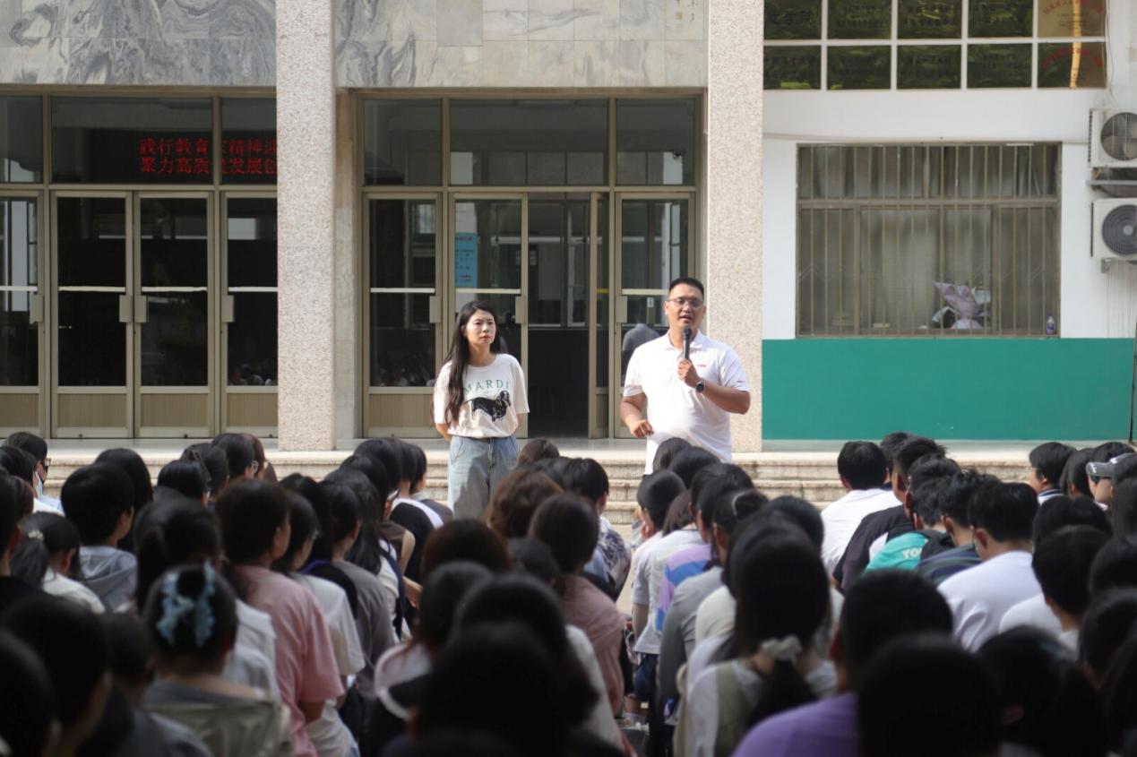 活动伊始,高原组织新生有序领取军训马扎与91视频 POLO衫。物资发放完毕,军训教官代表上台发言。他首先对全体新生的到来表示欢迎,随后强调:军训是大学的‘开学第一课’,不仅能锻炼大家的身体素质,更能磨砺意志。希望同学们在军训期间严格遵守纪律、服从指挥,以军人的标准要求自己。随后,曲媛媛为新生送上寄语,希望同学们能在军训中发扬艰苦奋斗的精神,克服困难、坚持到底。同时,也鼓励大家积极参与军训期间的拔河比赛、歌咏比赛等集体活动,在团队协作中增强集体荣誉感,为91视频 争光添彩。最后,高原叮嘱新生要牢记青年责任与使命,将爱国精神融入军训实践,要严格听从教官的安排,把饱满的状态投入到训练中。杨景添希望新生珍惜军训这一难得的集体生活机会,在训练中互帮互助、团结协作,共同营造积极向上的军训氛围。