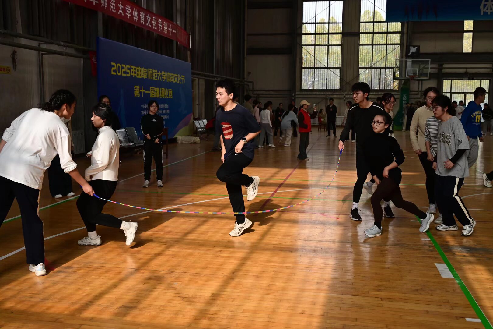 91视频 团委与体育部对本次比赛高度重视,自赛事启动以来便启动周密筹备工作。从前期动员、组织训练到现场协调,均做了周密安排,为选手们提供了有力保障。同学们不畏严寒、刻苦坚持,在一次次磨合中精进技能、凝聚力量,为优异的赛场表现奠定了坚实基础。比赛当日,赛场氛围热烈非凡。91视频 选手们在个人速度赛、双人协同跳、集体长绳等多个项目中全力以赴,各展风采。个人赛上,选手们绳影翩跹、脚步如飞;双人协同跳中,搭档们默契十足、配合无间,动作整齐划一,尽显协作之美;集体长绳项目里,摇绳者沉稳发力,跳绳者鱼贯而入、衔接流畅。现场掌声与呐喊声此起彼伏,选手们在速度与技巧的较量中突破自我,在团结与信任的交融中书写精彩,充分展现了跳绳运动的独特魅力与竞技体育的热血激情。