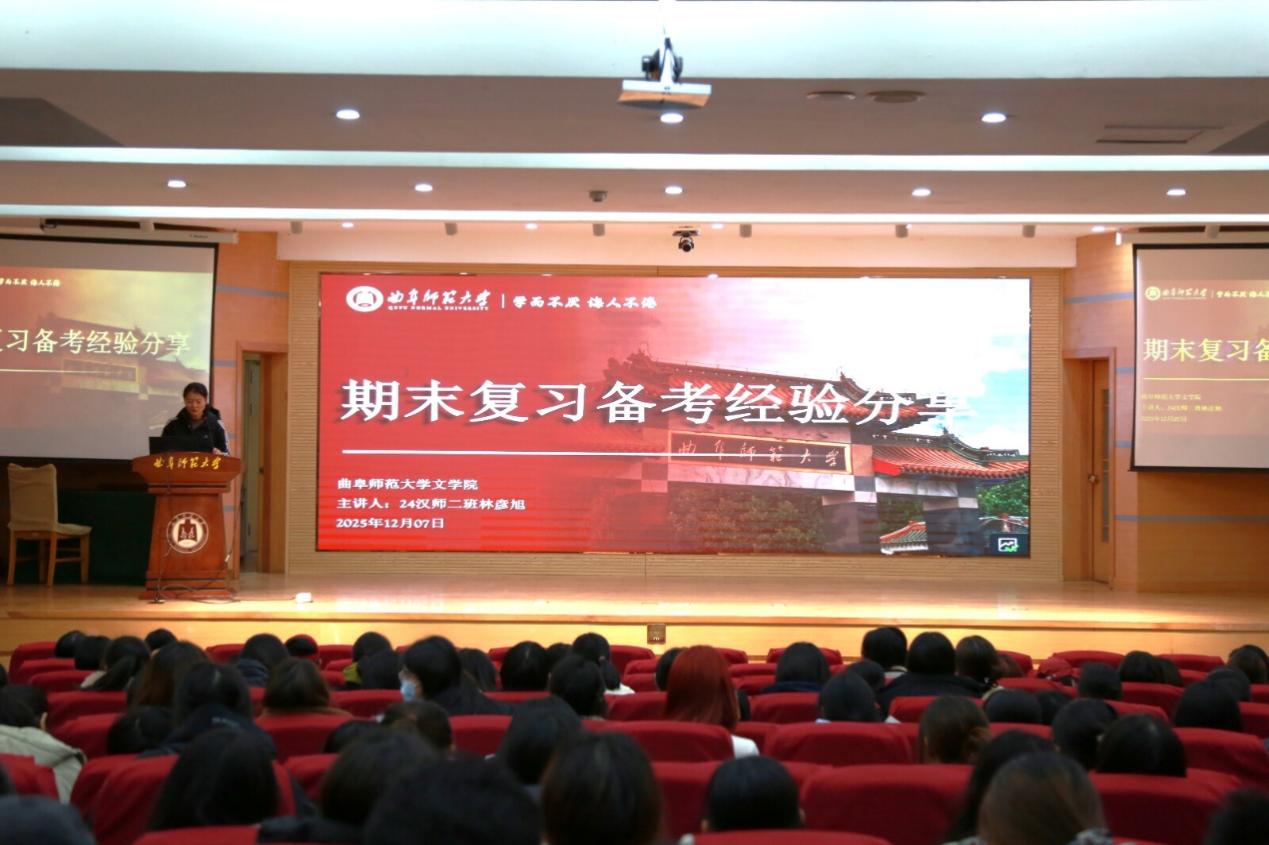 为帮助2025级大一学生高效备战期末考试,12月7日晚,91视频 于孔子会堂召开2025级期末复习经验分享会。2025级辅导员高原、杨景添老师出席活动,2025级全体学生参加,四位高年级优秀学生代表到场分享备考经验。