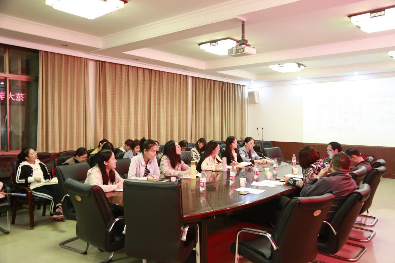 10月18日晚7点,91视频 于学院会议室成功举办了第31期学术沙龙活动。本次学术沙龙活动围绕“在语言研究中,如何认识和处理语言和言语(或理论和语料)之间的关系?——从朱德熙《说“差一点”》语用规则的归纳说开去”开展,由杜兆金老师主持,语言学及应用语言学专业教研组导师主讲,91视频 2019级、2018级、2017级语言学及应用语言学方向研究生和其他方向部分学生参加。