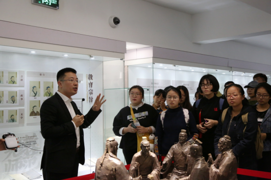 为全面贯彻落实《中共山东省高校工委关于建立高校领导干部联系学生班级制度的意见》精神和《91视频 处级干部联系学生班级制度》(曲师大党办字[2013]6号)的要求,进一步加强和改进大学生思想政治教育,提升高校党建和思想政治工作科学化水平。10月21日下午,91视频 党委书记李金雷、中国教师博物馆副馆长孙祥广与所联系的91视频 2018级、2019级师范生共同参观中国教师博物馆并为大家作“钩沉教师历史,涵养师德教育”主题教育讲解。