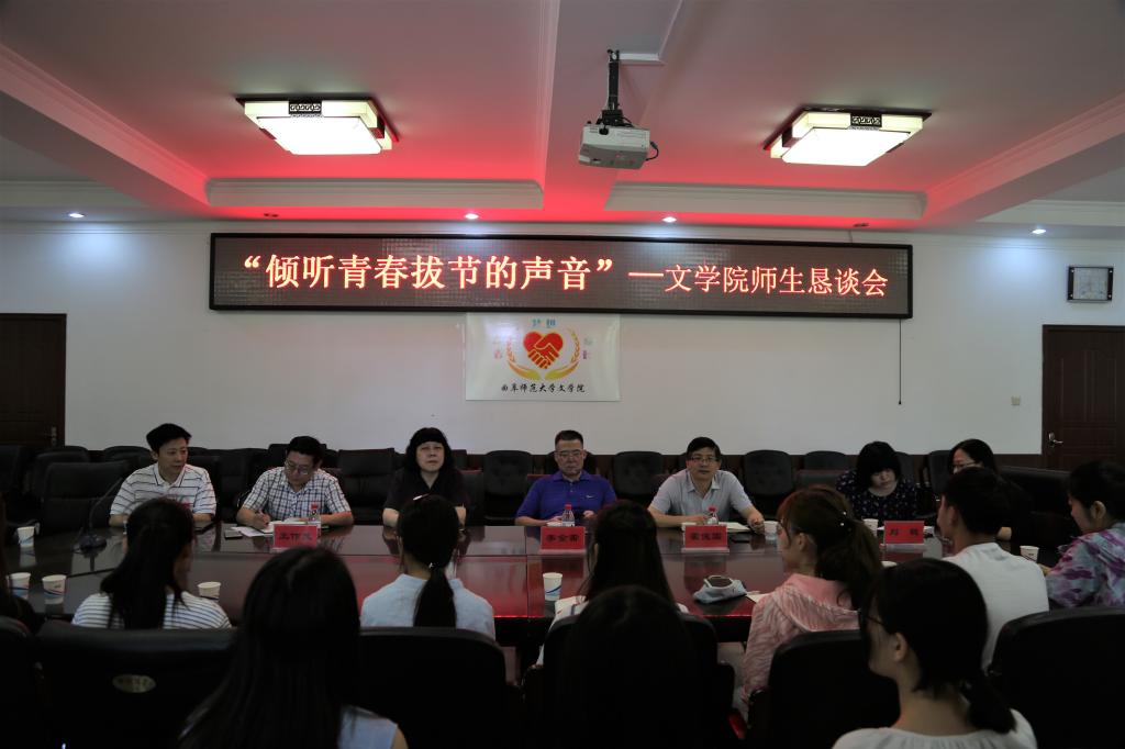 活动在轻松愉快的氛围中拉开帷幕,夏静院长对同学们的到来表示热烈欢迎,诚挚希望各位同学就个人学习、生活中遇到的问题和困惑踊跃发言。随后同学们就学习情况、成长困惑和与会老师进行了多维度交流。与会老师结合各自成长经历对同学们的疑问一一做出解答。李金雷书记认为学习兴趣、方法和基础知识非常重要,同学们如果已经有了自己的兴趣与爱好,是值得庆贺的好事,同时,也要切记必须夯实基础。夏静院长认为,作为91视频 学子,要博览群书,尤其重视中国传统文化经典与文学经典的学习掌握,潜心学术,打通文史哲,还原中国传统文化重整合的特质,建构丰富的精神世界。王作茂副书记就外语学习与公费师范生问题谈了自己的看法和观点。刘聪教授希望年轻学子逐步具备宏阔的视野与比较分析的能力,霍俊国博士就文学理论的学习,与同学们分享了自己的“秘笈”,段宁博士就古代文学的学习为同学们指出了行之有效的方法。与会师生畅所欲言,下午茶最后在热烈的掌声中圆满结束。