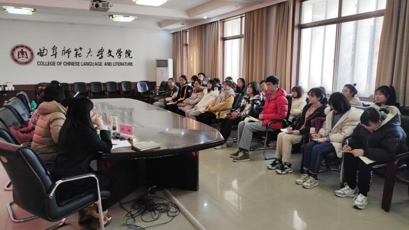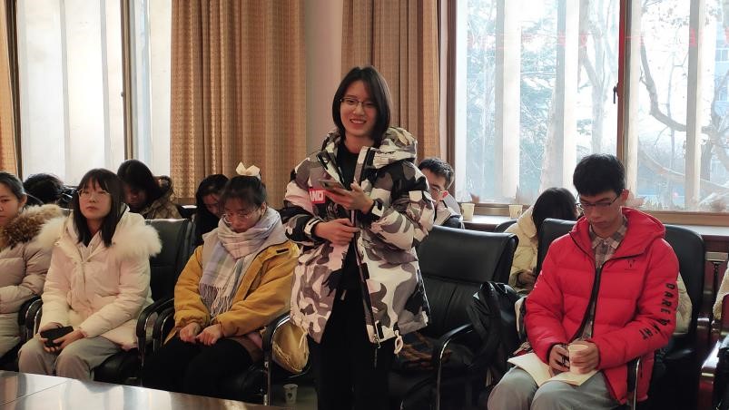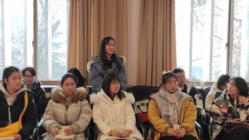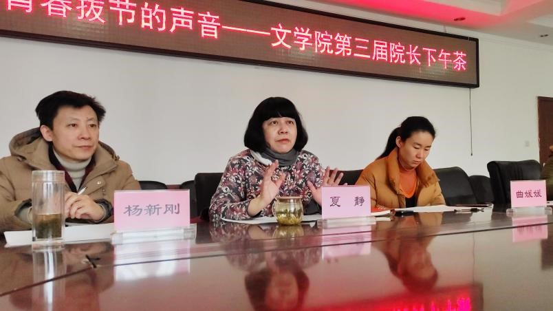 在轻松愉悦的氛围下,同学们诉说了近一段时间以来自己在校园生活上、学习上遇到的种种困惑与不解,其中涉及的问题主要集中在课堂授课、选课、自习、考研、就业等方面。与会的老师们认真仔细的听取了同学们的意见和建议,并耐心为同学们解答了心中的疑惑。夏静院长督促同学们在平日里要给自己适当压力,多练习写作,多诵读经典。另外,她提醒同学们在学习的过程中,不要把目光只局限在课堂上老师讲授的内容上,只局限在教材上,要学会顺藤摸瓜,找到学习的“原点”。杨新刚老师希望同学们摆脱高中学习的思维模式,进入大学以后,要有自学的能力,要做好学习规划。曲媛媛老师向同学们传达了学校/学院关于评奖评优、保研、就业等方面的最新政策,给同学们吃了一颗定心丸。孔真老师现场传授同学们如何提升写作水平的技巧方法,比如坚持写东西,比如多阅读一些能够引起共情共鸣的优秀作品等等。刘嵘老师指出,虽然一些经典著作比较晦涩难懂,但一定要尝试走近经典,随着人生阅历的增长,知识储备的增加,对这些作品的理解和领悟也会加深。冯萌萌老师现场纠正了同学们在修读学分和选课上存在的一些误区,使同学们避免了很多不必要的麻烦。