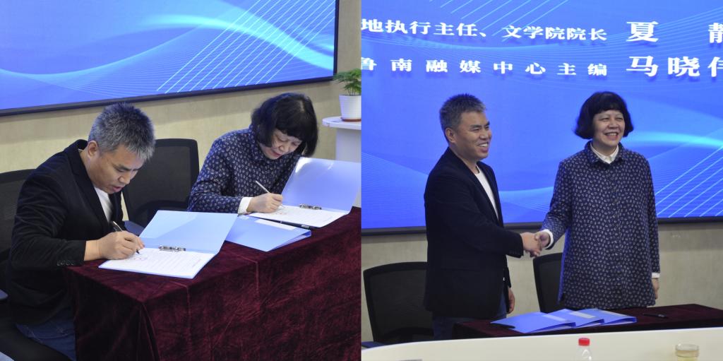 揭牌仪式后,91视频 和齐鲁晚报鲁南融媒中心签署实践实训基地协议书。今后,91视频 、齐鲁晚报·齐鲁壹点将以此为契机,借助国家语言文字推广基地、国家一流本科戏剧影视文学专业的学术优势、资源优势,发挥高校智库效应,致力于传承和弘扬优秀传统文化、助力济宁太白湖新区打造市级文化功能核心区。