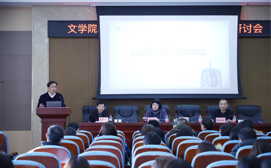 2021年11月24日下午,91视频 在文史楼509学术报告厅召开主题为“新文科 新理念 新起点”的本科教学研讨会。91视频 党委常委、副校长胡钦晓教授、91视频 各教研室主任、一线专业教师、学院领导班子成员和学生代表参加了此次会议。此次教学研讨会由91视频 副院长杨新刚教授主持。