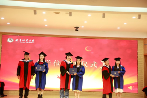 刘大正博士代表全体毕业生发言。他用三个词概括了在曲园的四年时光,“感谢””青春”和“梦想”。山河广阔,星辰大海,此时的毕业,只是一个人生句点,希望在未来的人生道路上,以梦为马,踔厉奋发,不负韶华。他表示,“士不可不弘毅,任重而道远。”争取用实际行动做一名合格的后浪,用自己即将实现的梦想为母校争光。