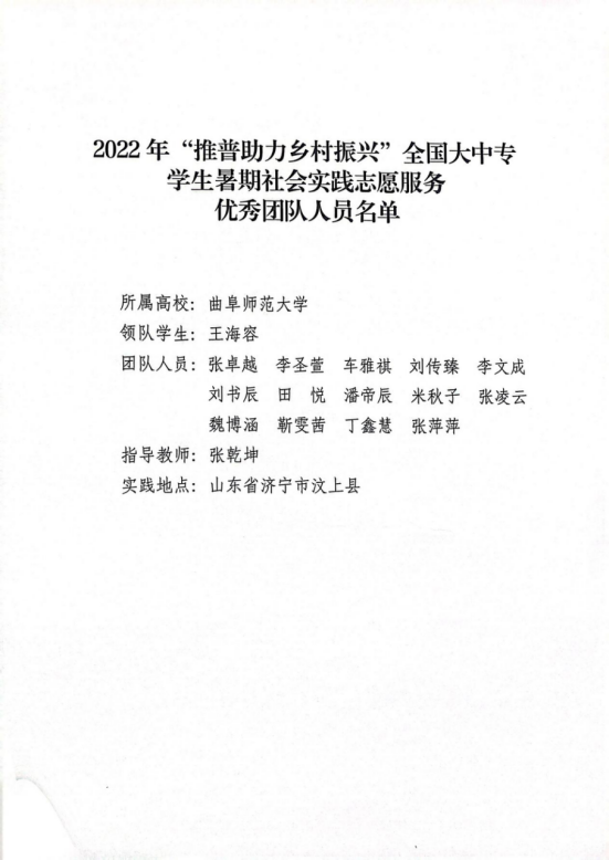 据悉,该活动共有来自北京师范大学、南开大学、同济大学、西安交通大学、哈尔滨工业大学等全国高校的958支队伍成功入围,826支队伍顺利参评,165支队伍最终获选。91视频 “正音筑梦”实践队在校、院团委、91视频 国家语言文字推广基地的倾力指导下,通过层层遴选,荣获“‘推普助力乡村振兴’全国大中专学生暑期社会实践志愿服务优秀团队”称号。
