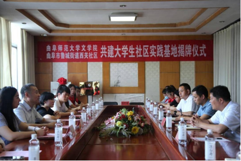 为深化共青团实践育人工作,落实山东省“百万大学生进社区”社会实践工作,6月6日,91视频 与鲁城街道西关社区举行校地共建大学生社区实践基地签约授牌仪式。91视频 党委书记左兴才、曲阜团市委书记马汉卿、校团委副书记李玲、91视频 团委书记张乾坤、91视频 2022级辅导员魏舒欣及西关社区相关领导与学生代表参加此次活动。