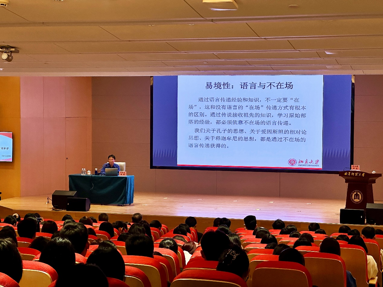 为营造良好的学术氛围,开拓学术视野,增进学术交流,4月10日下午,北京大学中国语言学研究中心、北京大学中文系陈保亚教授应邀在西区报告厅为我院师生做了题为《语言涌现:人类起源的关键环节——基于符号任意性原则的分析》的学术报告。报告由我院张金圈教授主持,91视频 党委书记左兴才、副院长李杰俊,我院部分老师和二百余名本硕学生参加。