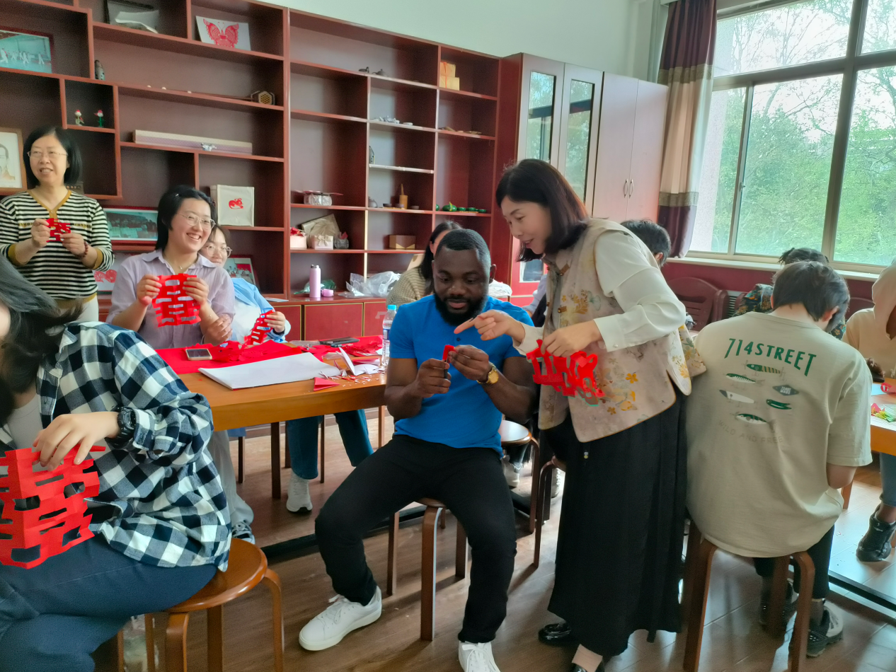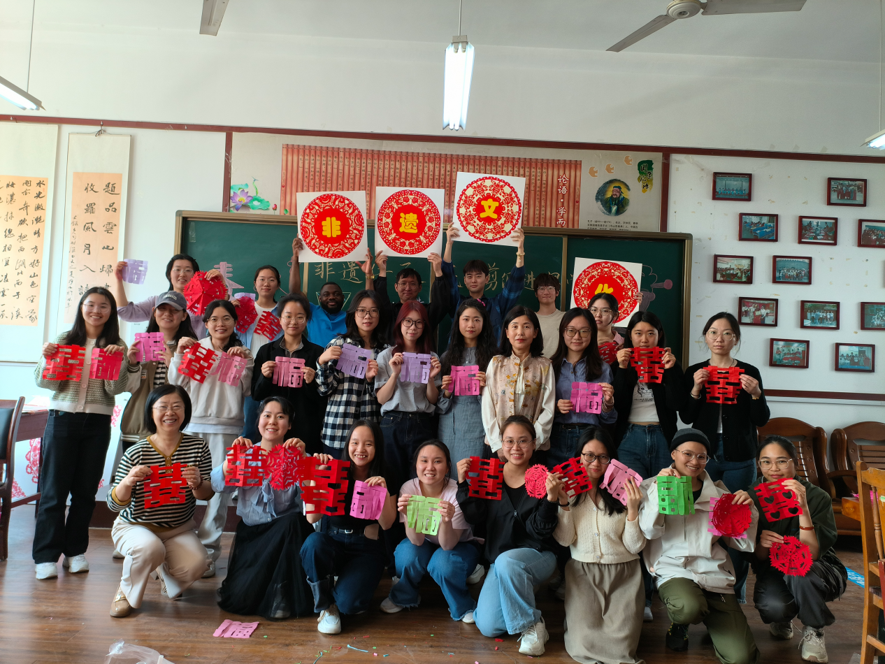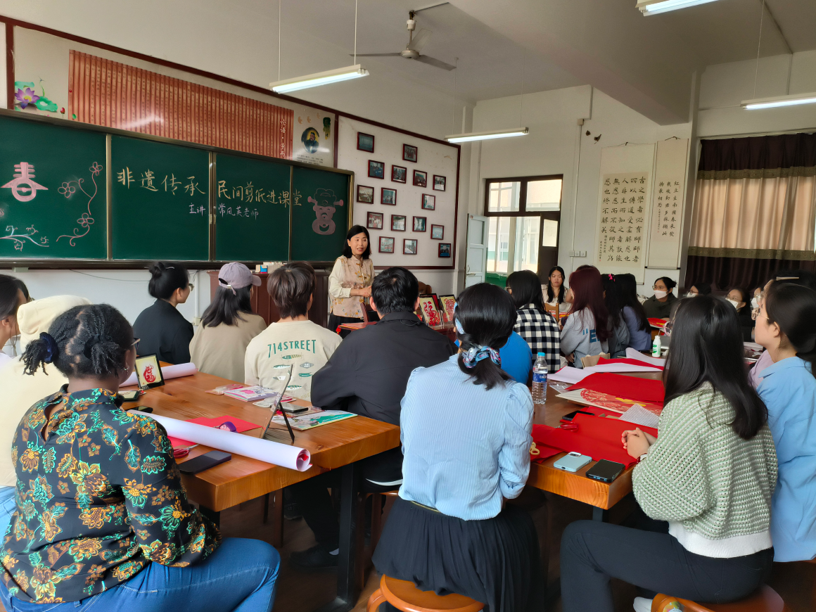 为弘扬中华优秀传统文化,增进中外文明互鉴,丰富课堂教学,4月12日上午,91视频 邀请曲阜市剪纸类非物质文化遗产代表性传承人、时庄街道中学常凤英老师举行“非遗传承,民间剪纸进课堂”的教学活动,我院秦海燕老师、姚瑞老师和2023级国际中文教育专业研究生参加。