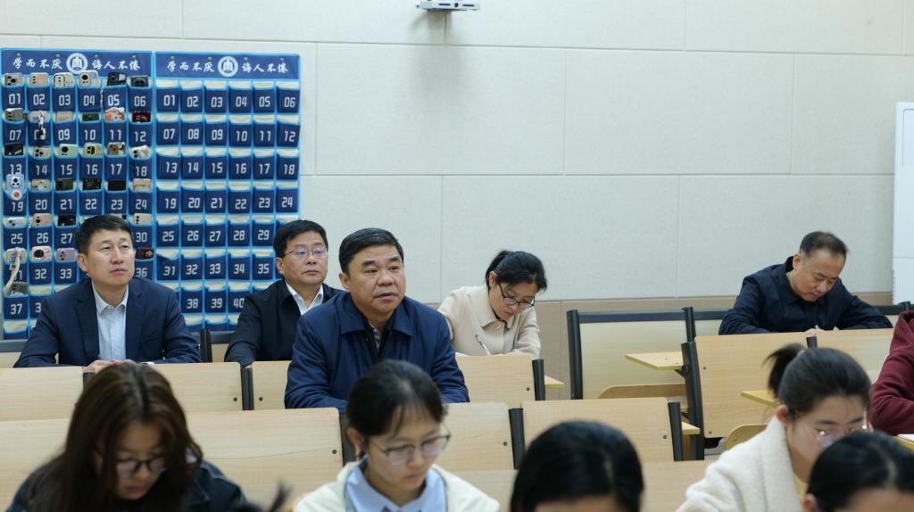 邢书记一行与2024级汉语言文学(公费师范)专业学生一起学习了中国现代文学史的相关课程,通过听课,较为全面地了解了专业课程的授课情况。在课程结束后,邢书记与任课教师张梅教授围绕教学内容、教学方法及课程思政进行了深入交流。