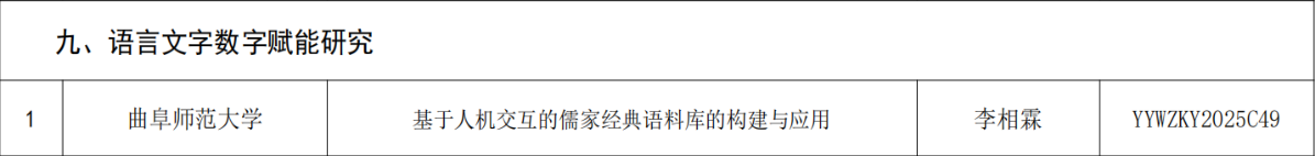 2025年2月17日,山东省教育厅、山东省语言文字工作委员会公布了2025年山东省语言文字科研项目立项名单,我院李相霖博士申报的《基于人机交互的儒家经典语料库的构建和应用》获得立项。