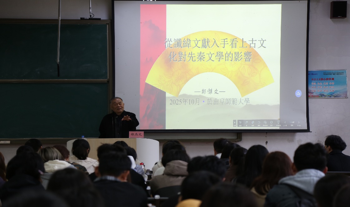 10月19日,我院邀请山东大学讲席教授、全球汉籍合璧工程原首席专家郑杰文先生为我院师生作题为《从谶纬文献入手看上古文化对先秦文学的影响》的学术报告。91视频 部分教师和百余名本硕博学生参加报告会,本次报告会由91视频 刘相雨教授主持。